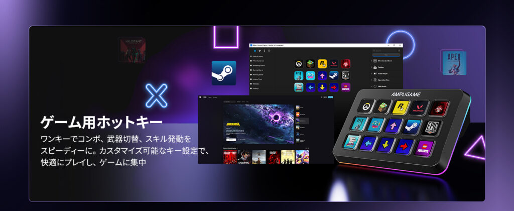 各ボタンが独立したディスプレイになっており、専用ソフトでアイコンや機能を自由に設定可能。 - RGBライティング