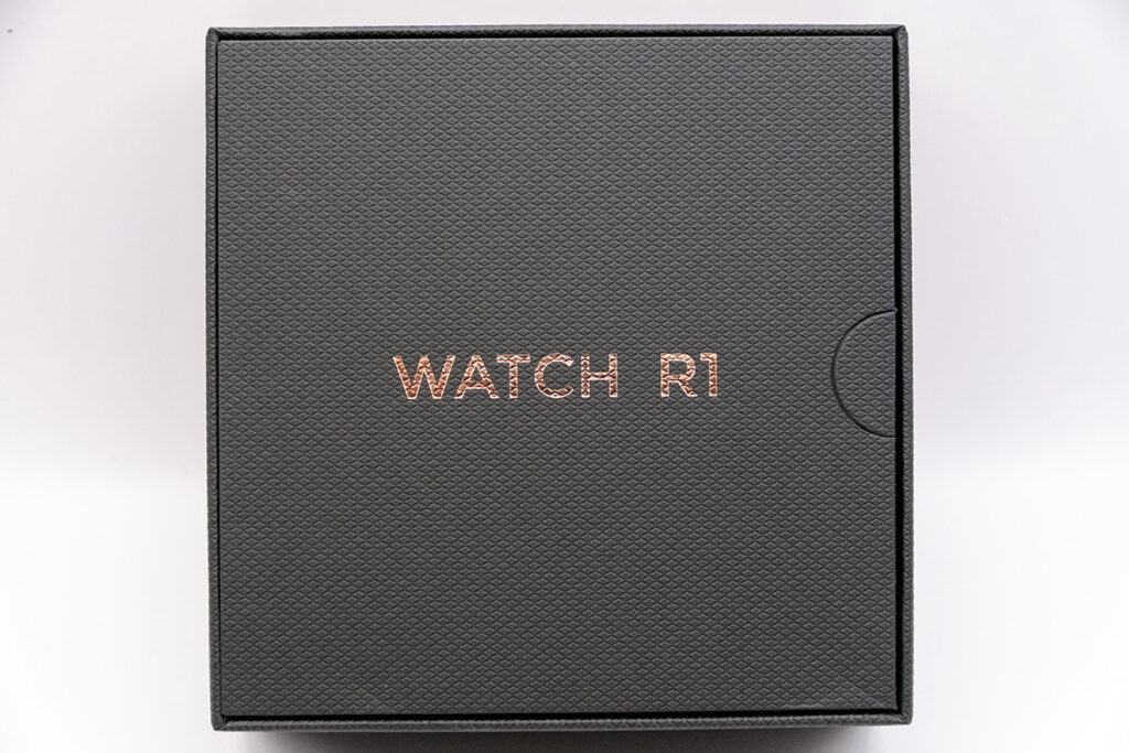 蓋を取ると「WATCH R1」の文字。