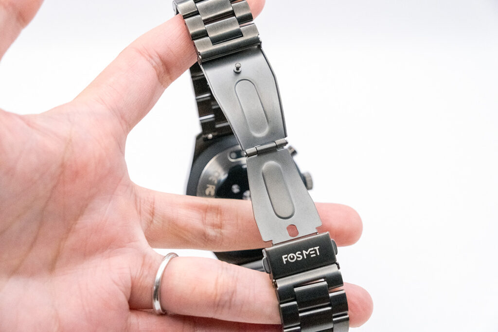 メタルバンドなので微調整が出来ないタイプの留め具が採用されている。
