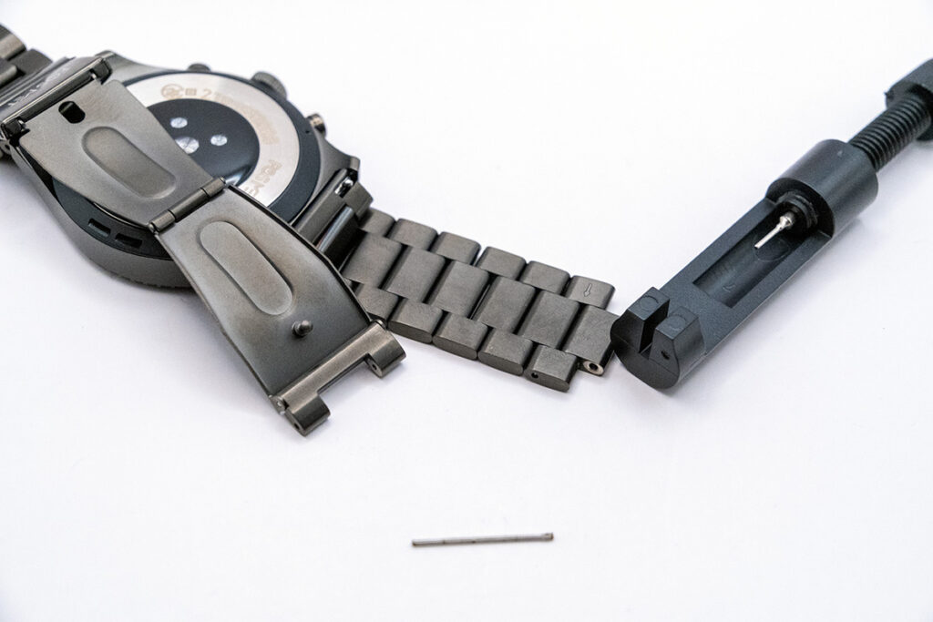 ピアッサーみたいな奴を使用してピンを抜いて調整。