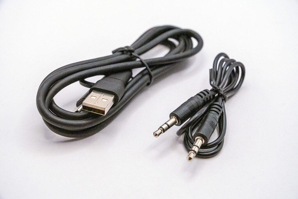 A(C)toCのUSBケーブル、AUX 3.5mmオーディオケーブル。