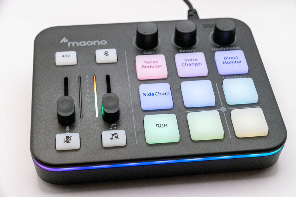 ポップな発光が可愛いコスパ良好ゲーミングオーディオミキサー。