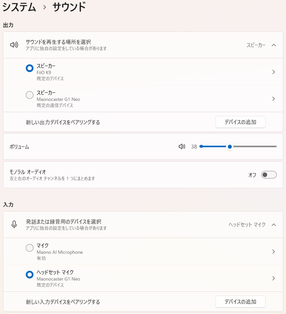 フェーダー部分はマイクボリューム、出力音声ボリュームとなっている。