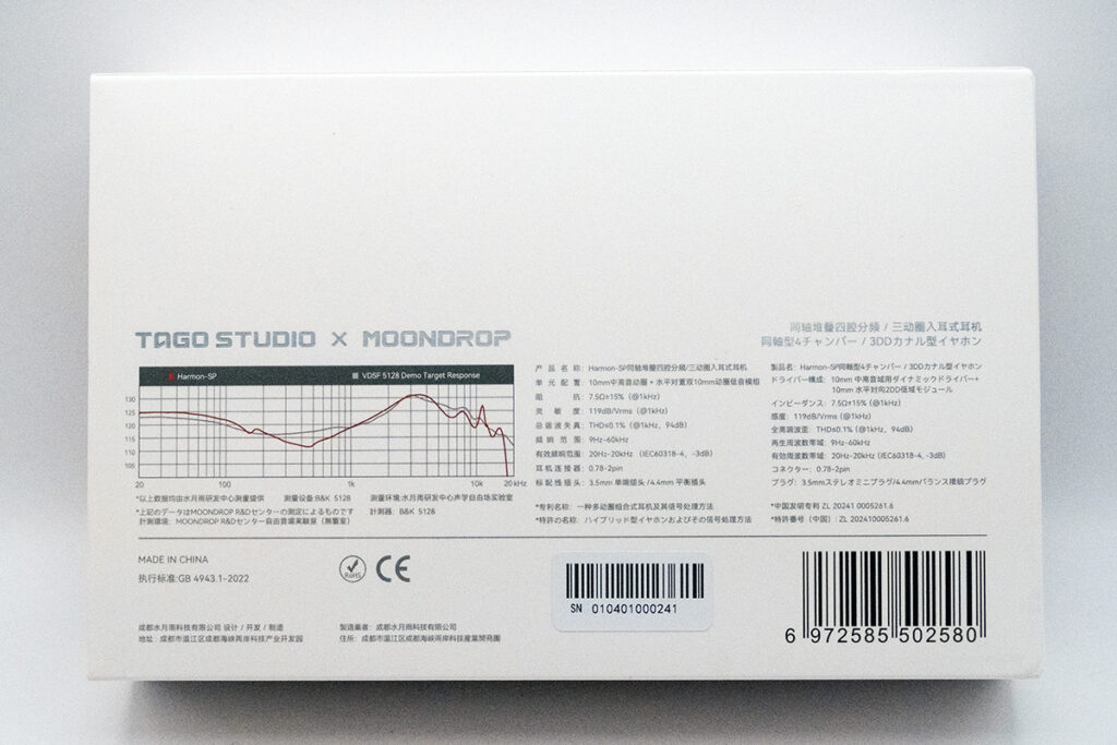 MOONDROP x TAGO STUDIO Harmon-SP の基本データ
