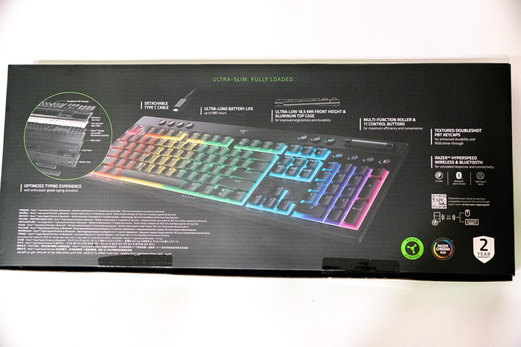 既存モデルであるRazer BlackWidow V4をベースに、薄型(ロープロファイル)且つ高性能ワイヤレスを実現したモデルとなる。