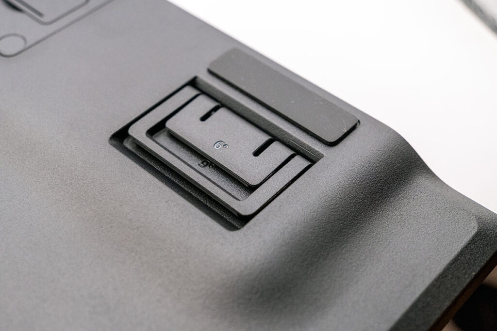 背面には2段階に調整可能なキックスタンドを装備。