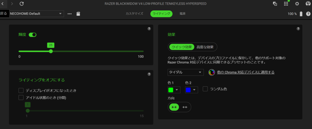 本機には制御ソフトウェアとしてRazer Synapseなるものが用意されている。
