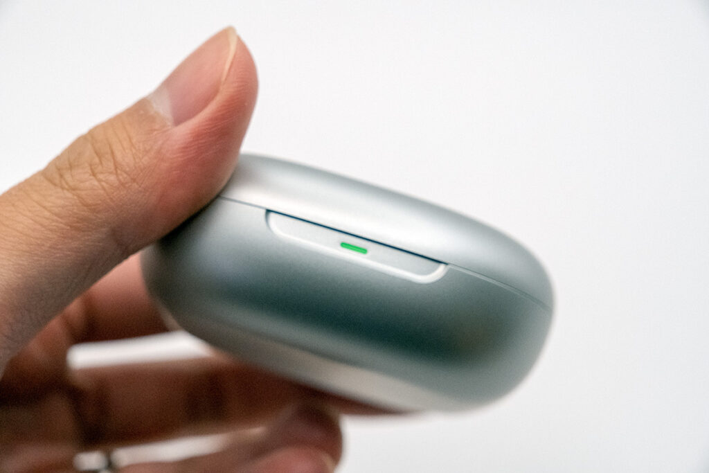 耳を塞がないオープンイヤーデザインを採用し、周囲の音を遮断せず「ながら聴き」に最適なモデルとなる。