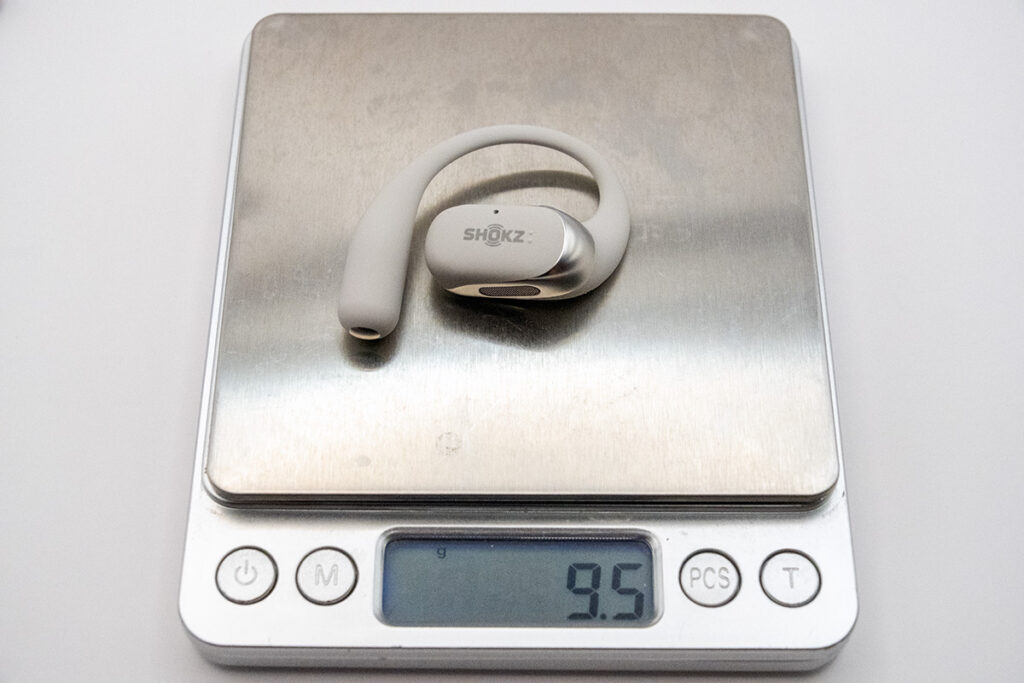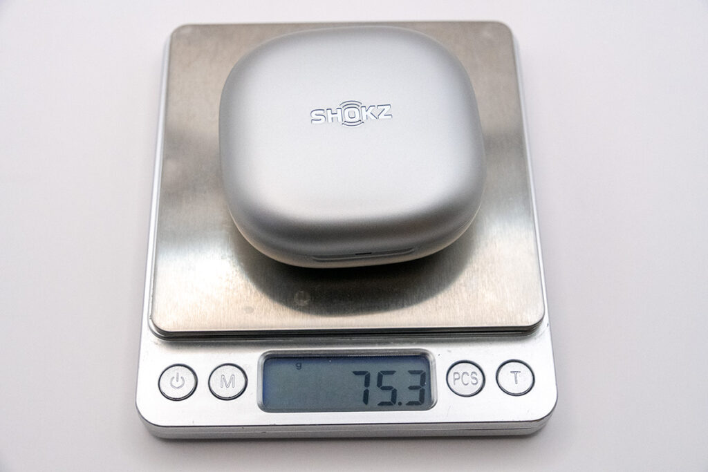 イヤホン単体は9.5g、ケース込で75.3gを計測。