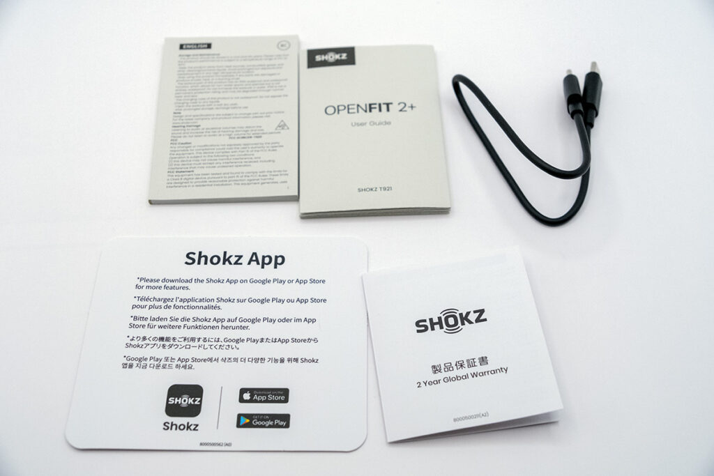 説明書、保証書、アプリ誘導書、AtoCケーブル。