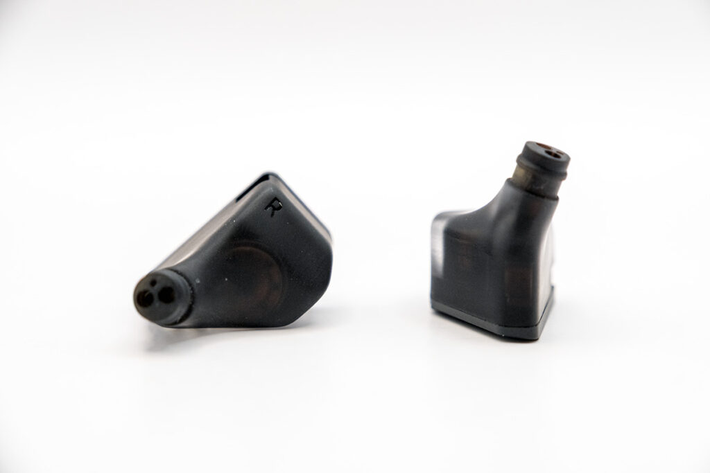HEXAはノズルが太いストレート形状であり、人によっては圧迫感があるようなデザインに対し、PUREはノズルの付け根を細くし、耳穴への挿入角度を見直すことで、装着の安定感と快適さが向上しているという。