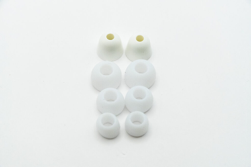 オプションとしては、遮音性とフィット感の高い低反発イヤーピース(S/M)と、軽い着け心地のシリコンイヤーピース(S/M/L)の2種類が付属。